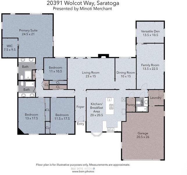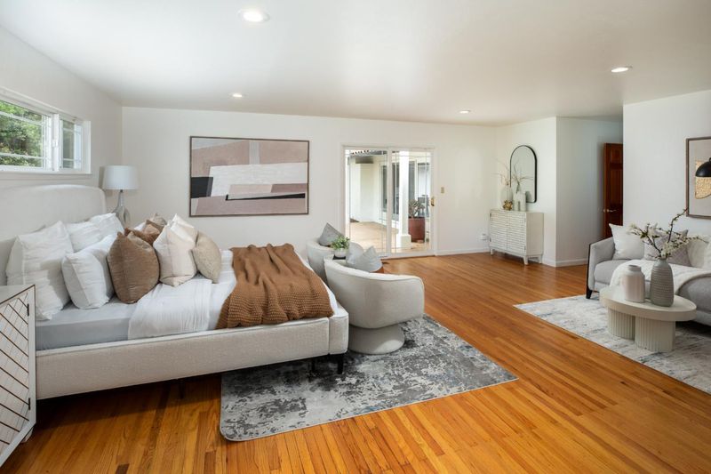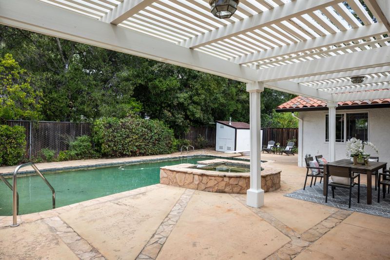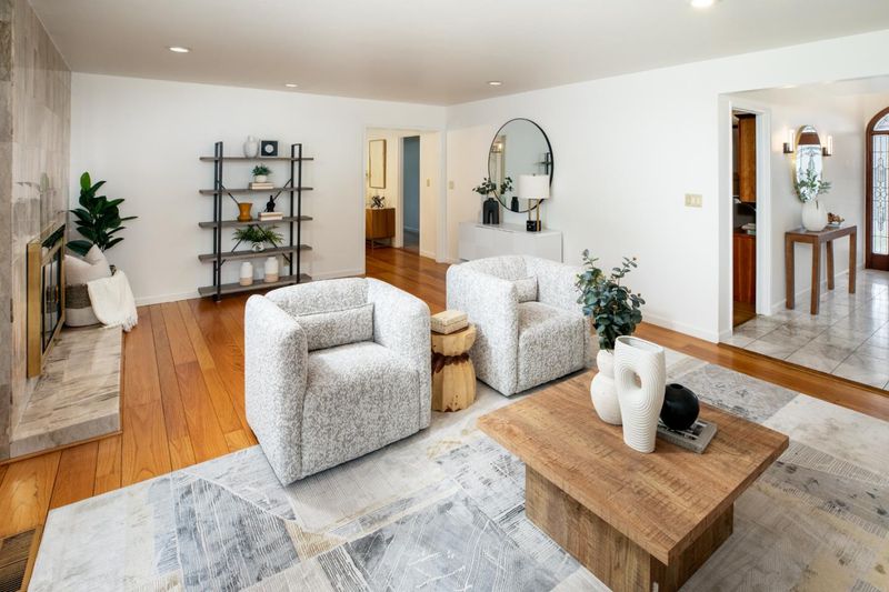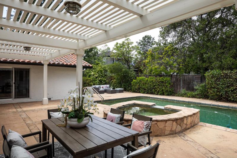 Welcome to this beautifully expanded and updated single-level residence in Saratoga's prestigious Golden Triangle, renowned for its top-rated schools and prime location. Offering 4 bedrooms plus a versatile den (optional 5th bedroom), 3 bathrooms. This home combines comfort, functionality, and timeless appeal. A significant 2004 renovation thoughtfully enhanced the home, expanding the primary suite, adding a flexible den, and extending the front of the home to enlarge the kitchen, garage, and front bedrooms creating a more open and practical layout. Designed for both everyday living and entertaining, the home features multiple living spaces including formal living and dining rooms, as well as a warm and inviting family room with vaulted ceilings. Large windows and Andersen sliding doors provide abundant natural light and seamless indoor-outdoor flow to the backyard and sparkling pool. The spacious kitchen is equipped with a built-in Sub-Zero refrigerator, ample cabinetry, and generous prep space ideal for any home chef. Recent updates include refinished hardwood floors, fresh interior/exterior paint, and modern lighting. Additional highlights include owned solar, tankless water heater, upgraded plumbing, smart home features, and seismic upgrades.