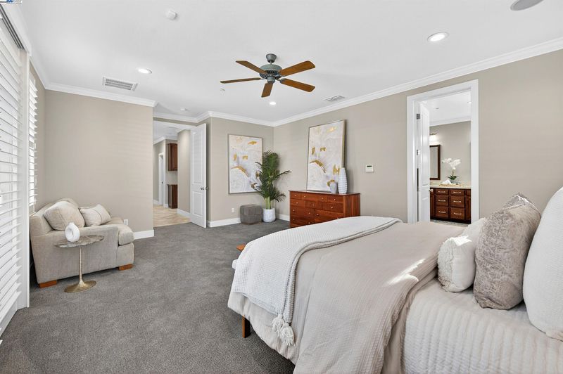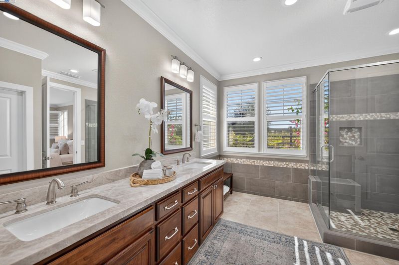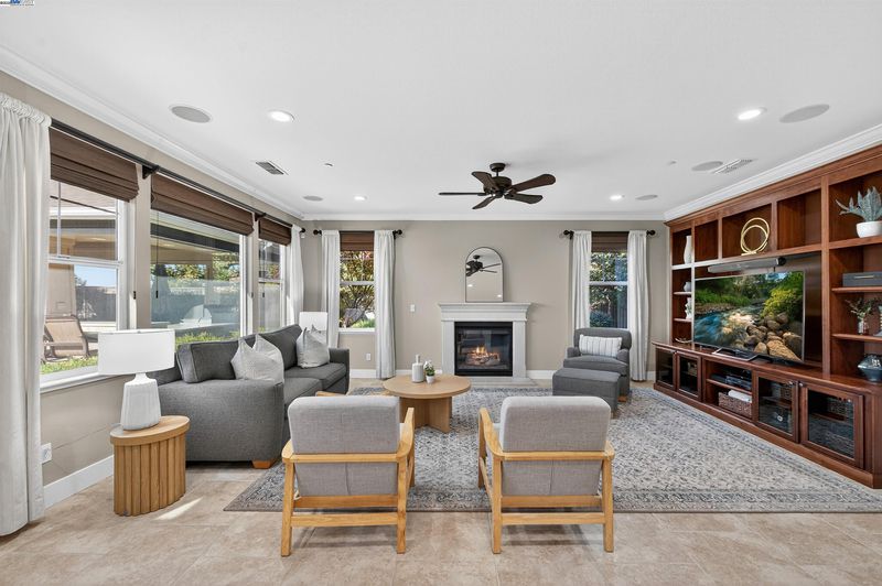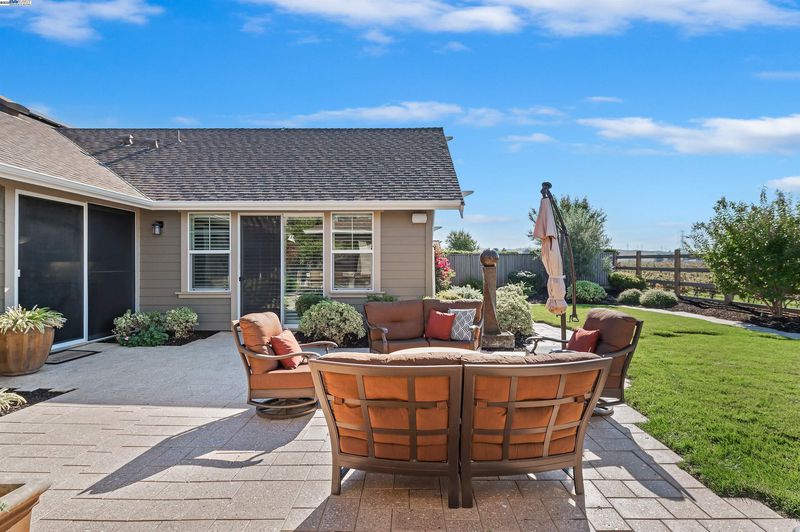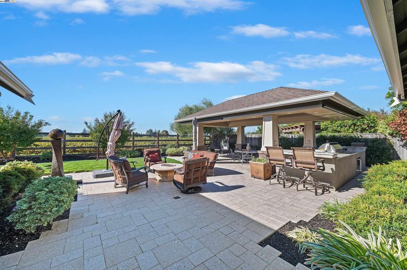 LOCATION, LOCATION, LOCATION! Don't miss this rare newer 1 story with unobstructed VINEYARD VIEWS. From the moment you step through the EAST FACING custom glass and iron front door you're greeted by a light and bright interior with sweeping panoramas of Livermore's iconic wine country. The luxuriously upgraded interior features extensive tile flooring, crown molding, plantation shutters, remodeled bathrooms, new lighting and so much more. The spacious primary suite showcases a large slider to the backyard and a remodeled en-suite bathroom with oversized walk-in shower. Vacation in your own backyard with a FULLY COVERED OUTDOOR PAVILLION with built-in heat lamps, recessed lighting, fans, large granite counter area with bar seating, and Viking outdoor refrigerator/warming drawer/and two side burners, plus a spectacular Lynx Sedona grill. This backyard oasis truly has it all complete with a two hole putting green, gas fire pit, serene fountain, large storage shed and extensive vineyard views along with spectacul