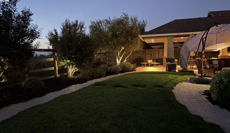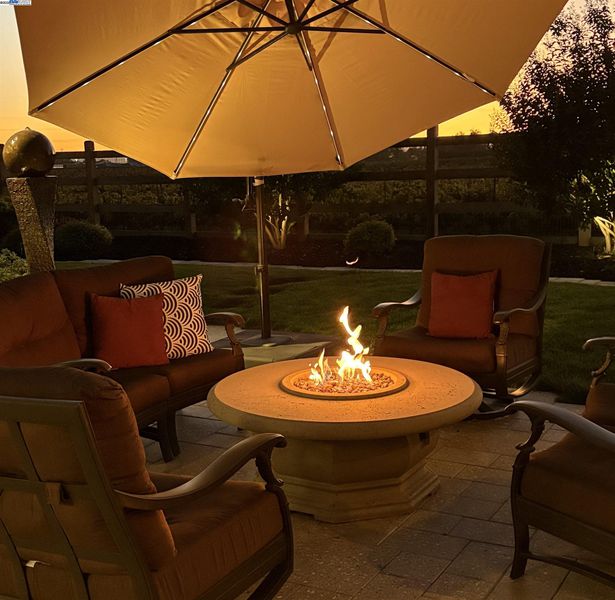 Don't miss this rare newer 1 story with unobstructed VINEYARD VIEWS. From the moment you step through the EAST FACING custom glass and iron front door you're greeted by a light and bright interior with sweeping panoramas of Livermore's iconic wine country. The luxuriously upgraded interior features extensive tile flooring, crown molding, plantation shutters, remodeled bathrooms, new lighting and so much more. Vacation in your own backyard with a FULLY COVERED OUTDOOR PAVILION with built-in heat lamps, recessed lighting, fans, large granite counter area with bar seating, and Viking outdoor refrigerator/warming drawer/and two side burners, plus a spectacular Lynx Sedona grill. This backyard oasis truly has it all complete with a two hole putting green, gas fire pit, serene fountain, large storage shed and extensive vineyard views along with spectacular evening sunsets. The attached 3 car garage is fully finished with epoxy floors, abundant custom garage cabinets, and houses the OWNED ELECTRIC SOLAR panel and BACK UP BATTERY! Do not miss this rare opportunity!