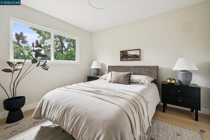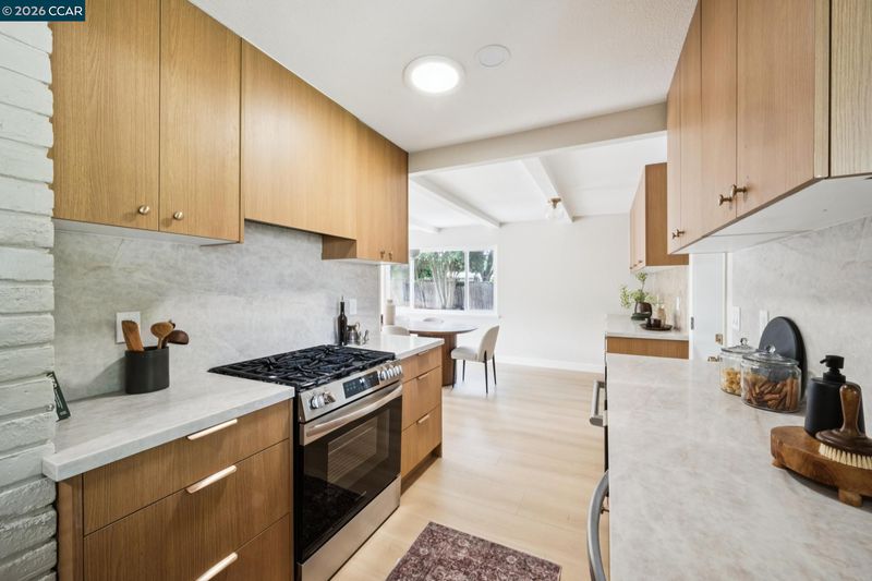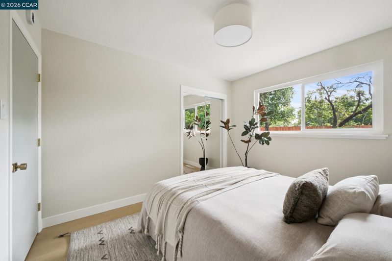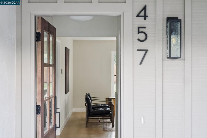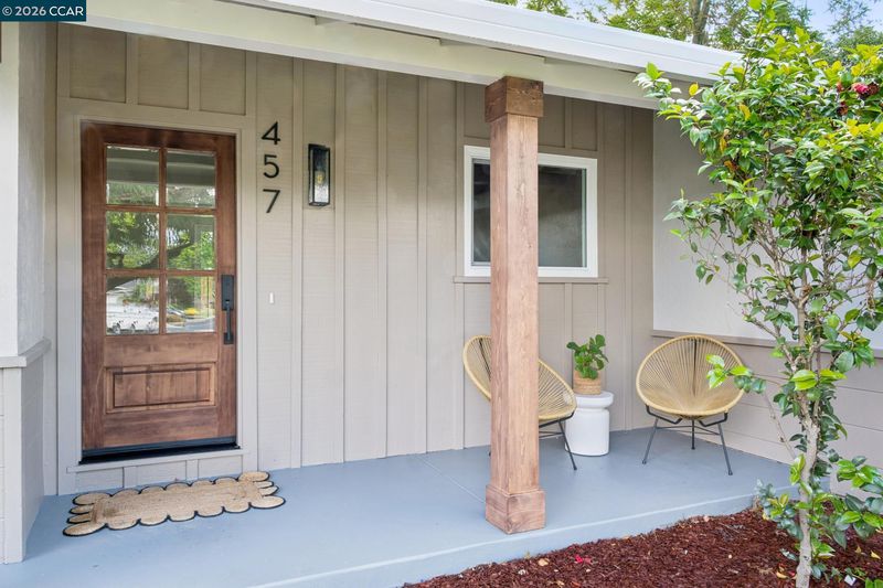Nestled at the end of a cul de sac surrounded by mature trees sits this beautifully updated 3 bedroom, 2 bath ranch style home on nearly half an acre of flat land. The long driveway is surrounded by lush, new sod & leads to the charming covered porch with stunning wooden door. Enter the light filled home that features new flooring, windows & paint throughout. Old meets new with exposed brick & new countertops, cabinets & appliances. The living room overlooks the expansive backyard & an oversized dining room with wet-bar featuring a built-in wine fridge completes the chic entertaining space. A renovated hall bathroom & two well sized bedrooms lead to the primary suite with walk-in closet & beautiful en-suite bathroom. For those warm East Bay summers, there is a whole house fan along with a newly installed HVAC system. The true gem is the large pie shaped lot with endless possibilities. Close proximity to PH Bart, downtown Pleasant Hill, Walnut Creek & Concord, 457 Nora Court gives you the privacy retreat you crave while being in close proximity to it all.
