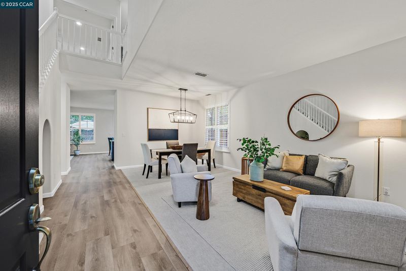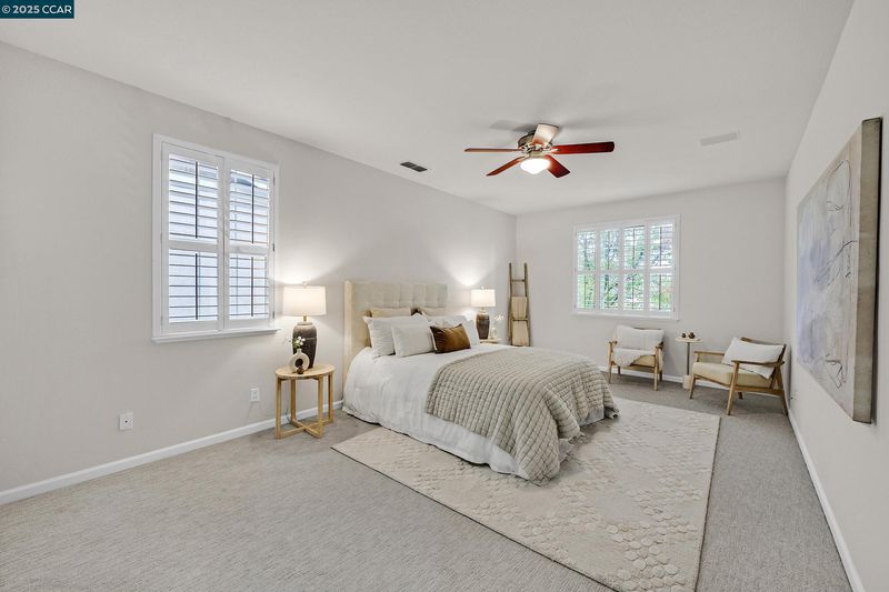 Located in one of Danville’s most sought-after neighborhoods, California Meadows, this beautiful home sits at the end of a serene court on a spacious lot offering privacy and extra land on the side. With 5 bedrooms, 2.5 bathrooms, and an oversized loft, the 2,623 square feet of living space feels open and inviting. The welcoming front porch and striking curb appeal set the tone for the stunning interior featuring soaring ceilings and abundant natural light. The expansive formal living and dining rooms flow seamlessly into the gorgeous kitchen with granite counters, 4-burner gas range, oversized island, eat-in nook, and ample cabinetry, all overlooking the cozy family room with gas fireplace. A dedicated office/den is conveniently located off the family room. Upstairs, the large loft is ideal for a game room or media retreat, while the impressive primary suite boasts a spa-like bath with dual vanities, jacuzzi tub, separate shower, and an oversized walk-in closet. The backyard is a true oasis with a lush lawn, mature trees, and an expansive patio with retractable awning perfect for entertaining. Additional highlights include recessed lighting, plantation shutters, brand new flooring, fresh interior paint, and baseboards throughout. This home is perfection and is move-in ready!