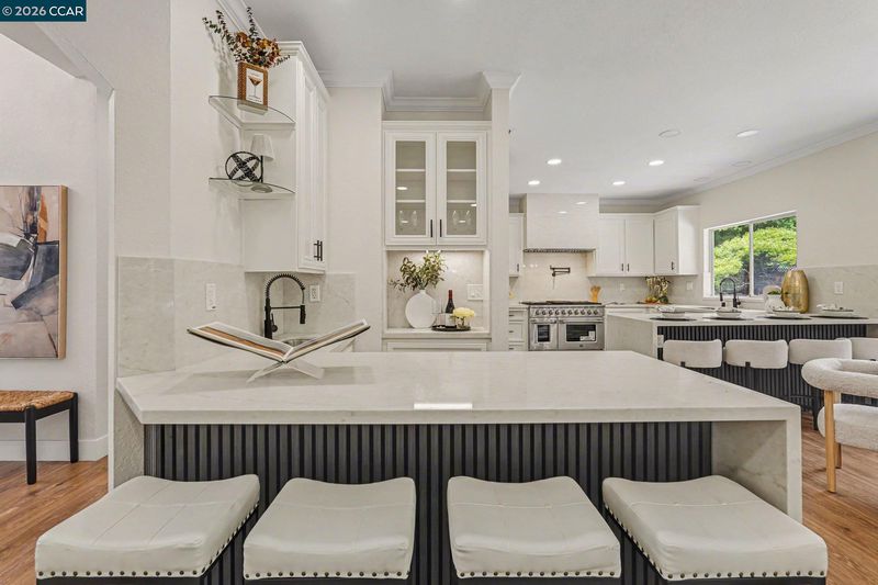 Set in a quiet, private neighborhood in one of Walnut Creek’s most sought-after pockets, this single-story residence delivers a rare combination of space, flow, and refined living. With 5 bedrooms and 3 full baths, the layout is both expansive and intentional designed to move effortlessly from one space to the next. The kitchen stands as a true centerpiece, featuring a 48-inch range, custom stone hood, and an inviting atmosphere built for gathering. A separate wet bar and prep space elevate the experience even further. Step outside to a recently updated pool, creating a resort-style setting perfect for both relaxation and entertaining. A location that offers privacy without compromise close to top-tier amenities, dining, and everything Walnut Creek is known for.