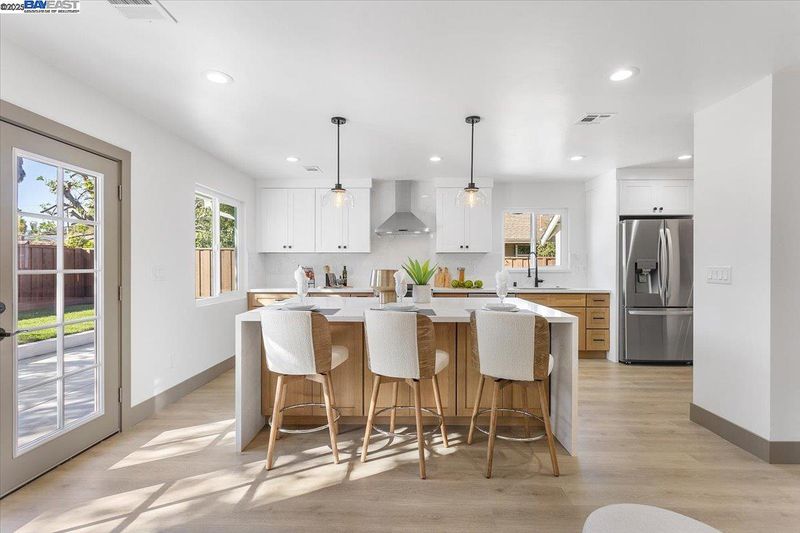Beautifully remodeled (permitted) home with significant upgrades and situated on a large lot in desired neighborhood. Stunning curb appeal followed by interior upgrades that show off a contemporary mood highlighting a stunning transformation that includes breath taking color schemes; impressive baseboard/laminate flooring/interior door combination; kitchen remodel with combination white and sand style shaker cabinetry, gleaming backsplash tiles, gorgeous counter tops, new appliances brightened with contemporary pendant and LED canned lighting; beautiful island that separates open floor plan between kitchen and living room setting with french door/backyard views; private dining area and laundry room, contemporary lighting and LED canned lights throughout home and tastefully tiled fireplace/mantel piece; remodeled primary and main bathrooms showing off incredible tile work in shower and flooring as well as contemporary vanities and fixtures. In addition this full remodel includes new roof/gutters, new windows/sliding doors, new HVAC system (including ducts), new main and sub panels and rewired electrical throughout, insulation in walls/ceilings, new plumbing throughout, garage door, fresh sod managed by irrigation system and new pavement at back/side/driveway along with fencing.