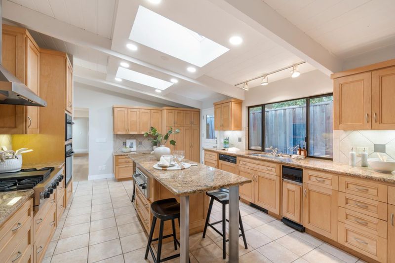 - Cooktop - Gas, Countertop - Granite, Dishwasher, Garbage Disposal, Hood Over Range, Island, Oven - Built-In, Refrigerator, Skylight, Trash Compactor, Warming Drawer