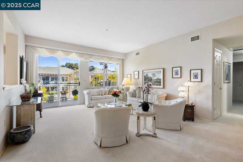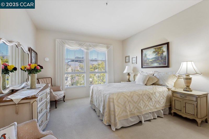 Step into this elegant East-facing Waterford Filoli model penthouse with an open-concept living and dining area that seamlessly extends to a private balcony, perfect for relaxing or entertaining under the open sky. The kitchen, complete with a cozy breakfast nook, offers the perfect place to start your day. Down the hallway double doors lead to a luxurious primary suite with a walk-in closet and private toilet and shower room. The large second bedroom is adjacent to the hall bathroom that features a bathtub and stacked washer/dryer. Conveniently located next to elevator #1 in the North building with only one shared wall. This unit has one of the few under-building parking spaces. Meticulously maintained and move in ready. Condo is offered fully furnished, if desired. The Waterford monthly dues include one meal daily in the dining room and housekeeping service once a week.