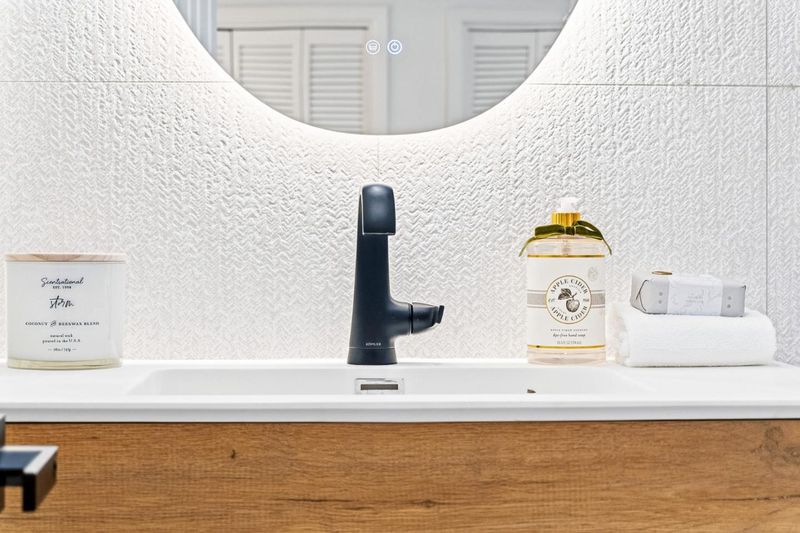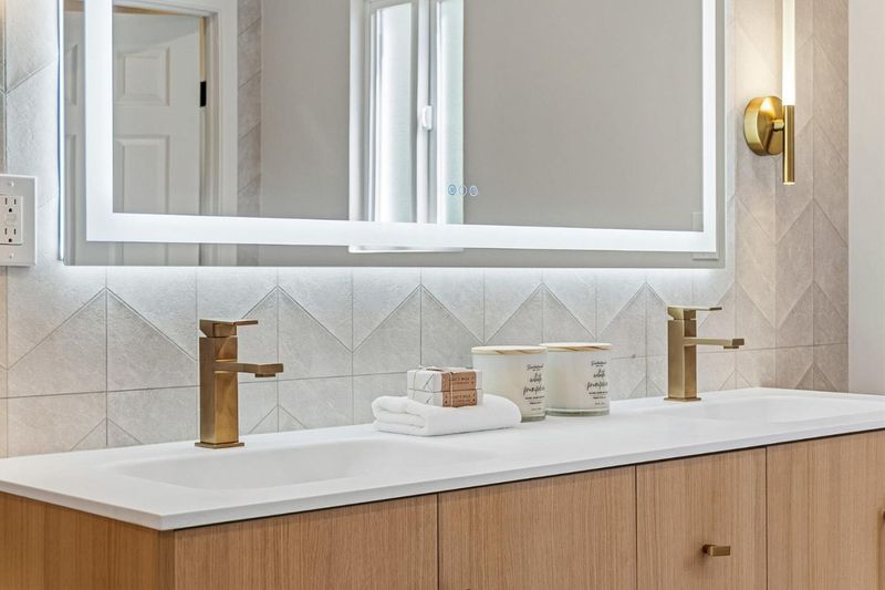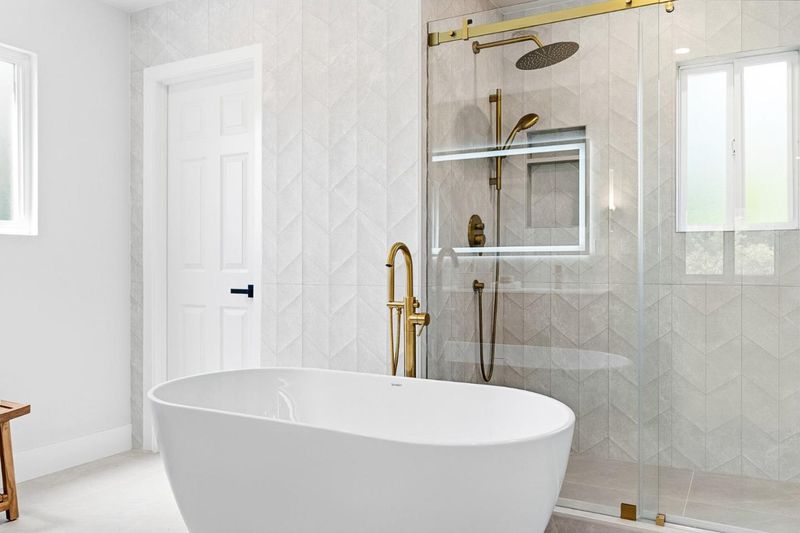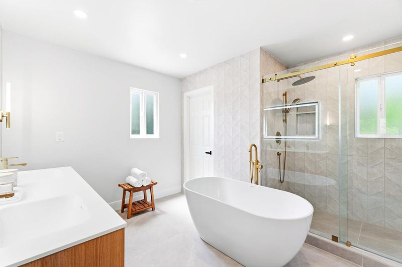 - Double Sinks, Full on Ground Floor, Primary - Oversized Tub, Stall Shower, Tile, Tub in Primary Bedroom, Updated Bath