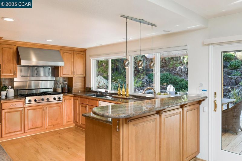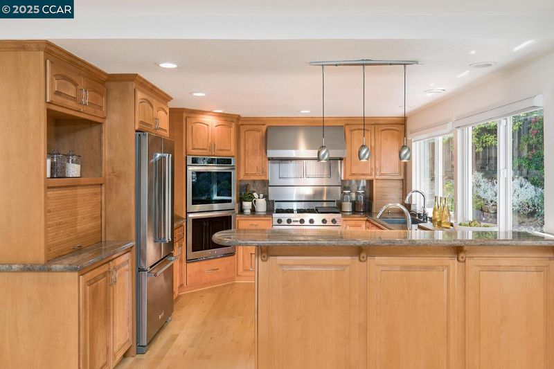 Welcome home to this beautiful home situated on a cul-de-sac in desirable Rudgear Meadows. Carefully maintained and thoughtfully updated, this home is move-in ready and perfect whether you’re relaxing after a long day or entertaining a crowd. Maple hardwood floors flow seamlessly through the entry, formal living and dining rooms, and into the kitchen/family room. The remodeled kitchen features large picture windows overlooking the backyard, a Viking 6-burner gas range, custom Maple cabinetry with soft close doors and pull-out shelves, 2 sinks, double ovens, and granite countertops. The kitchen opens to the family room and includes a custom built-in media center and sliding glass doors that open to the private backyard oasis. Quiet and serene, the lovely outdoor space features a pergola, a redwood deck, a built-in gas grill, drought-tolerant landscaping, citrus trees, a waterfall feature, and a spacious flagstone patio.