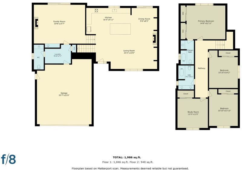 - Tile, Half on Ground Floor, Showers over Tubs - 2+