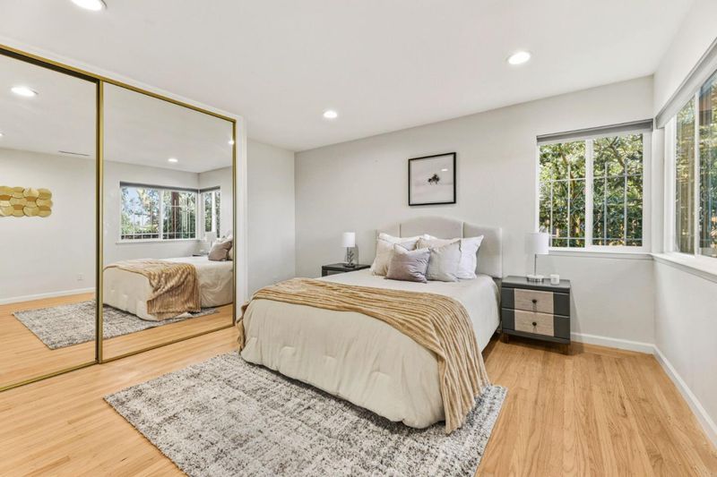 Set on a peaceful, tree-lined cul-de-sac in sought-after Crocker Highlands, this inviting mid-century home blends timeless character with thoughtful modern updates. The bright living room welcomes you with rich refinished hardwood floors and a classic wood-burning fireplace, creating a warm and comfortable gathering space. Beyond the dining area, the kitchen enjoys a sense of privacy and calm, overlooking mature trees and stunning sunset views. The main level features a spacious primary suite, a secondary bedroom and full bath, and generous closet storage enhanced with custom Elfa systems. The lower level offers exceptional flexibility with a second en-suite bedroom, an additional bedroom and bath, a family room, and a full kitchen opening to a large deck, ideal for entertaining, extended family, or guests. Upgrades include refinished hardwood floors, Elfa closet systems, newer roof, furnace, and freshly painted interior, foundation improvements, an updated deck, and a concrete slab. The newly sodded front yard with irrigation adds fresh curb appeal, while the unfinished basement and two-car garage with custom cabinetry provide abundant storage. Conveniently located near the shops and dining of Park Boulevard, Lakeshore, and Grand Avenue.
