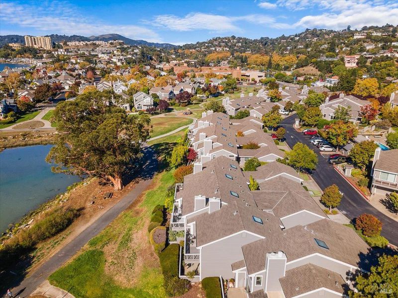 Discover serene waterfront living in the coveted Drakes Landing community at 40 Drakes View Circle, a light-filled split-level townhome with breathtaking views of Corte Madera Creek and Mount Tamalpais! This contemporary 3 bedroom, 2.5 bath residence blends modern upgrades with a tranquil setting, offering the best of Marin County. The lower level features two spacious bedrooms, each with a private ensuite bathroom and access to an outdoor patio providing captivating creek views. The entry level includes a versatile third bedroom or office with large windows welcoming morning light. Upstairs, the kitchen is complete with a cozy breakfast nook and flows into a bright living and dining area with west-facing doors opening to a private deck overlooking the creek and Mt. Tam's greenbelt. Ample storage and a two-car garage complete this move-in-ready home. Steps from the scenic Niven Park bike path along Corte Madera Creek, enjoy easy access to shops, restaurants, and the Larkspur Ferry Terminal with San Francisco just an approx. 20 minute drive away. Experience luxury, nature, and convenience in one exceptional package!
