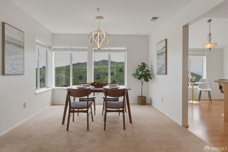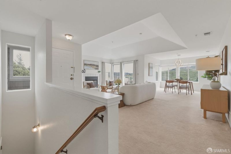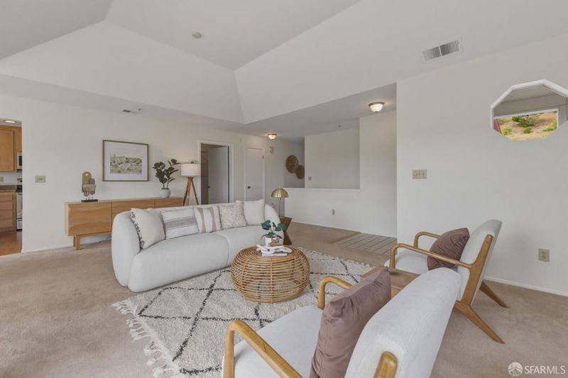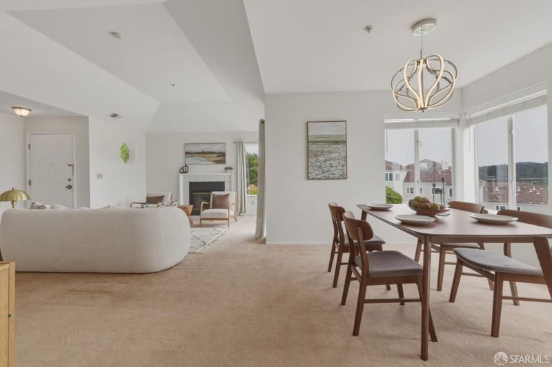 Welcome home to this inviting and spacious 2-bedroom, 2-bathroom townhouse-style condo in the sought-after Pointe Pacific community. This top-floor corner unit lives like a townhome, featuring direct access from the garage into the home! Step inside to cathedral ceilings and a bright, airy feel, with city and mountain views from both the living and dining areas. The spacious living room features a fireplace and opens to a private patio perfect for enjoying fresh air and the surrounding scenery. Designed for comfort and privacy, this home offers a well-thought-out layout with two bedrooms. The primary suite includes a large en-suite bathroom and double closets. Additional highlights include an attached one-car garage and a deeded parking space. Pointe Pacific is a gated, professionally managed community offering a safe, quiet, and private setting, along with amenities such as a clubhouse and gym. An excellent alternative to a single-family home, this property offers strong value with lower maintenance. Conveniently located just minutes from BART, downtown San Francisco, Oyster Point-Home to Biotech Companies, Serramonte, Westlake, and Stonestowne shopping centers, SFSU, and easy freeway access to SFO and 101. Enjoy close proximity to San Bruno Mountain's hiking trails while remaining connected to San Francisco.