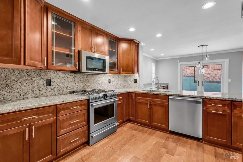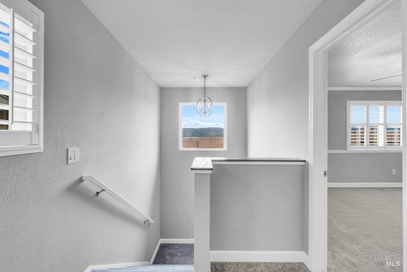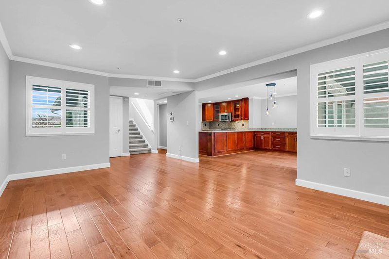 Thoughtfully designed 3BD/2.5BA townhome in the Casa Hills neighborhood of Benicia, offering 1,571± SF of comfortable, updated living space. Recently refreshed, the home blends traditional warmth with modern convenience. The main level features a bright living room with fireplace, wood floors, recessed lighting, and plantation shutters. A formal dining area opens to a private patio through French doors—ideal for entertaining or relaxing outdoors. The updated kitchen includes stainless steel appliances, granite counters, breakfast bar, and warm wood cabinetry. A laundry room and guest ½ bath complete the main floor. Upstairs, the spacious primary suite offers Bay and bridge views, dual vanities, walk-in shower, and ample closet space. Two additional bedrooms share a full bath—well suited for family, guests, or home office. Fresh paint, new carpet, and central A/C make it move-in ready. The fenced yard features a smooth concrete patio, low-maintenance landscaping, resin shed, and side yard for storage or play. Oversized 2-car garage with interior access, cabinetry, and workspace. Convenient to parks, schools, shops, dining, and downtown Benicia, with easy I-780/680 access.
