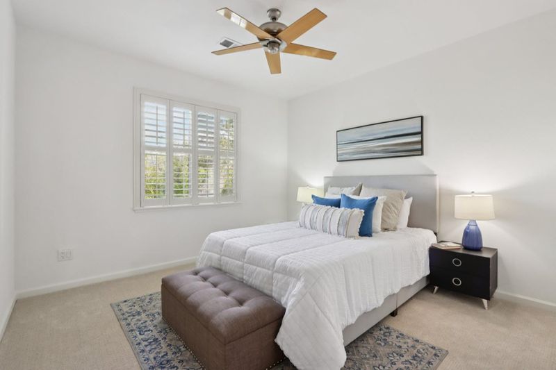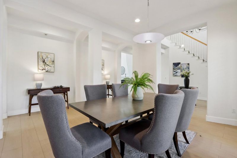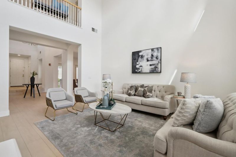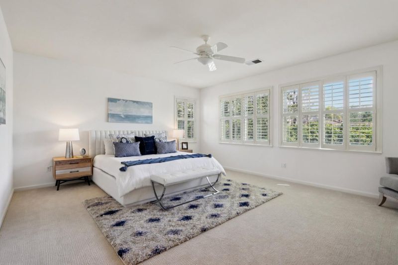 Located in the premier gated Silver Creek Valley Country Club, this spectacular home offers a bright, open floor plan and brand new luxury laminate flooring. The gourmet kitchen is a chef's dream, featuring a center island with a vegetable sink, top-tier Bosch stainless steel appliances, and a walk-in pantry. The versatile layout includes a downstairs guest bedroom with a full bath and a unique flex space not counted in the official square footage which is equipped with HVAC and windows, perfect for an office, an art studio, a gym, or a 5th bedroom. Upstairs, every bedroom features its own private bath. Walls of windows bathe the interior in natural light and views of Mount Hamilton, while plantation shutters add convenience and elegance. Experience seamless indoor-outdoor living with a large, private grassy backyard and a grand front courtyard ideal for relaxation and entertainment. Energy efficiency comes with a 9.36 KW solar system that will be paid off at closing. This residence perfectly captures the essence of California luxury and offers peaceful privacy. Just steps from top-rated Silver Oak Elementary and 2 community parks. Exclusive club amenities available with membership, including golf, tennis and swimming. A masterclass in artistic design and functional luxury!