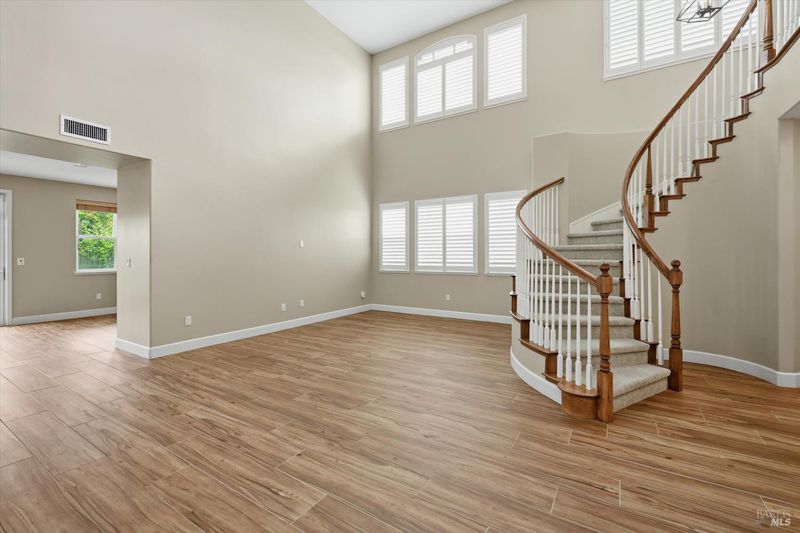 Step into this beautifully appointed 3,392 sq ft residence offering 4 bedrooms and 3 bathrooms, where elegance meets everyday comfort. Soaring high ceilings create an airy sense of grandeur, while a graceful spiral staircase adds a striking architectural focal point. At the heart of the home, a gourmet chef's kitchen shines with upgraded appliances and refined finishes, ideal for both casual meals and elevated entertaining. Generous living spaces include a sophisticated formal living room and a warm, inviting family room, each designed for effortless flow and relaxation. A spacious 3-car garage provides ample convenience, while sweeping views enhance the home's serene ambiance. Owned Generac whole house stand by gas generator. Perfectly positioned directly across from a lush park, this exceptional property blends beauty, space, and location into a truly captivating lifestyle opportunity.