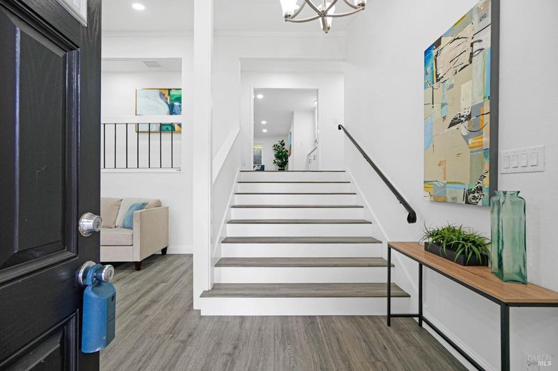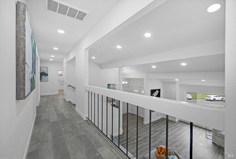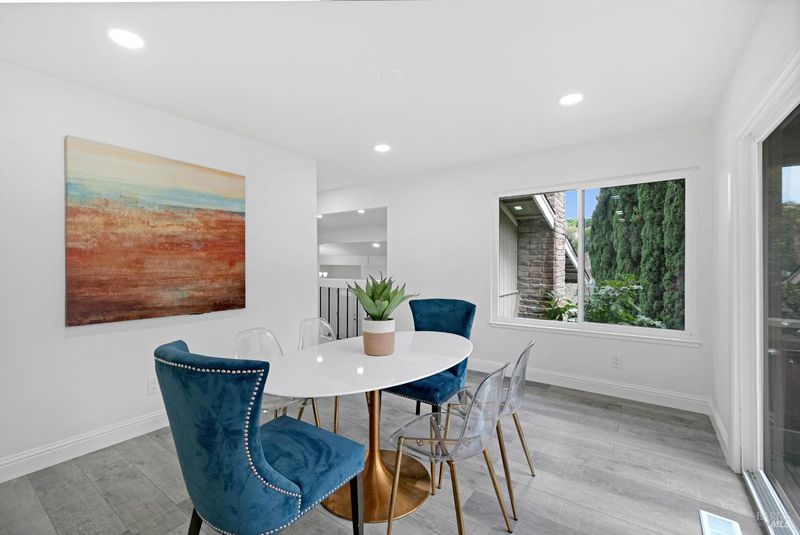 Experience luxury living in the tranquil Vallejo Hills on a prestigious, beautifully situated court. This stunning home boasts 4 spacious bedrooms, 2 full baths, and 2,316 sqft of entirely upgraded, elegant interiors. Step inside to a generous living room featuring breathtaking views of rolling hills, vaulted ceilings, and a cozy wood-burning fireplace perfect for relaxing and entertaining. Ascend a few stairs to discover an expansive family room with a built-in wet bar, decorative vessel sink, and quartz countertop, ideal for hosting gatherings. The open-concept chef's kitchen is a culinary paradise, equipped with quartz countertops, a stylish stainless farmhouse sink, glass cooktop, drawer microwave, double drawer dishwasher, and subway tile backsplash. Adjacent, the large dining area opens to a concrete side patio, perfect for outdoor entertaining amidst scenic nature. Retreat to the primary suite with a private balcony overlooking the hills, and a luxurious primary bath featuring a double floating vanity and a spacious walk-in frameless glass shower. Modern touches include recessed lighting, indoor laundry, abundant natural light, luxury vinyl floors throughout, and new paneled doors with hardware. Easy freeway access, shopping, Near the SF Ferry & BART. A must see!