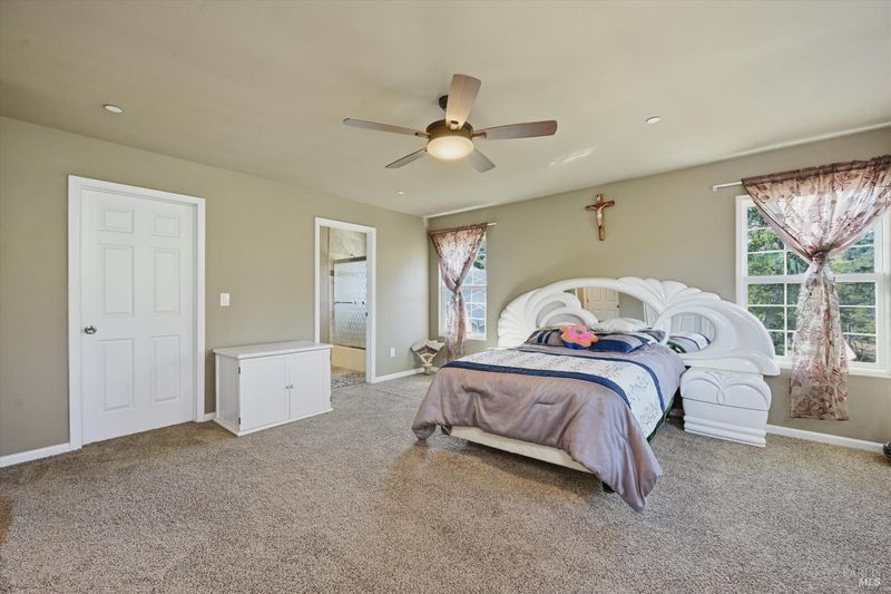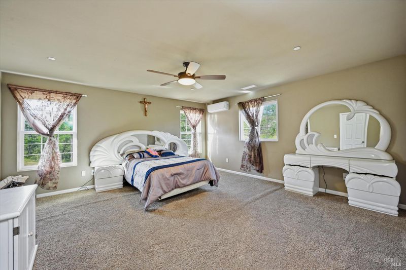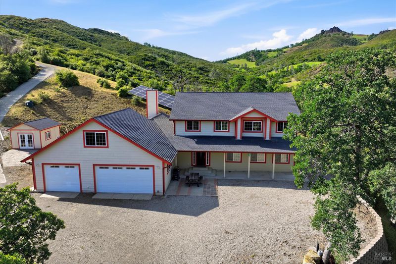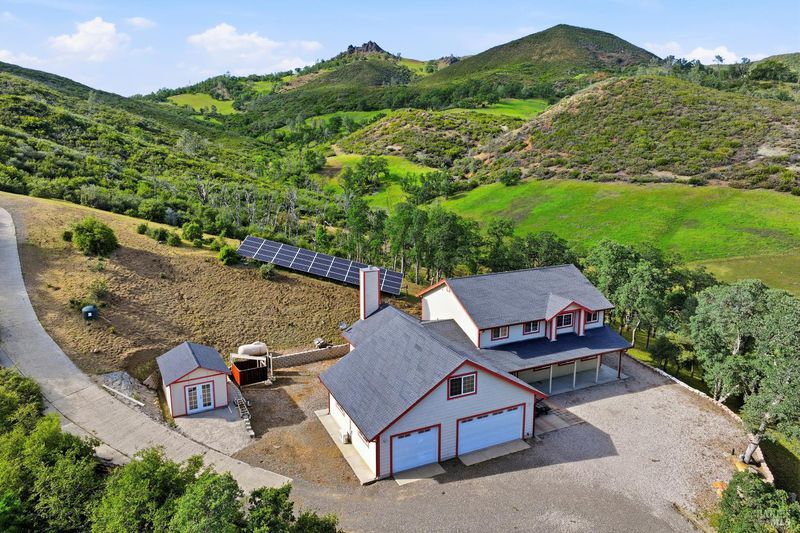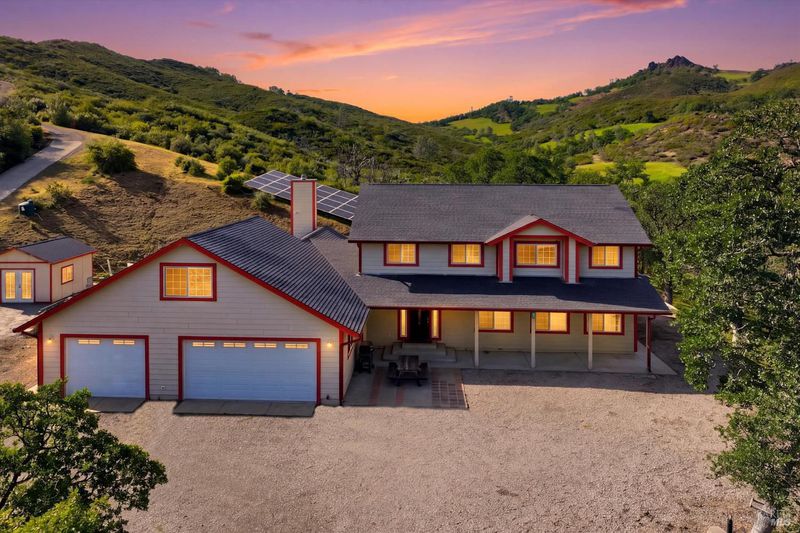 118 acres of Northern California ranch living with refined interior finishes and exceptional infrastructure. This 4-bed, 3.5-bath residence features marble countertops throughout, an open-concept kitchen with center island, bar seating, and generous storage. The family room adjoins the kitchen and includes a wood-burning fireplace and sliding glass doors opening to mountain views. A separate living room provides additional space for daily living. Each bedroom is individually climate-controlled via mini-split systems. The primary suite offers dual sinks and a well-appointed bath. A extra room above the 4-car garage is suitable for office, guest, or flex use. Property is fully cross-fenced and currently supports approx. 7 cows and 1 bull (born on-site, available to convey). Seasonal pond, natural year-round spring, and miles of drivable trails throughout the acreage. Two high-producing wells (approx. 42 GPM buyer to verify) with solar-powered irrigation. Owned solar array with battery backup powers the entire property. Additional structures include an older mobile unit used for garden/storage and a dedicated alfalfa barn area. Custom outdoor shower on site. Abundant firewood. RV/boat parking available. Washer and dryer included. Suitable for primary residence, working ranch, multi-generational use, or short-term rental opportunity. Buyer to verify all data including acreage, GPM, and permitted uses with applicable county agencies.$115,000 premium off-grid solar system: 12.42 kW solar array (36 SolarWorld panels) 61.2 kWh lithium battery bank (18 Simpliphi modules) Dual Outback 8 kW inverter-chargers Four Outback FlexMax 80 controllers 16 kW Generac propane backup generator Ground-mounted IronRidge systemThis system stores over 61 kWh and produces 12.42 kW of solar more than enough to power the entire home comfortably with full off-grid capability. 2.5 hours from Bay Area 1.75 hours from Napa