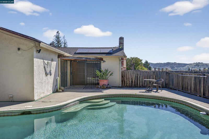 Welcome to 817 Ketch Court, nestled in the highly desirable View Pointe neighborhood of Rodeo. This charming single-story home offers comfort, functionality, and thoughtful upgrades throughout, including a newer roof, solar power for energy efficiency, air conditioning, and a whole-house fan for year-round comfort. Inside, you’ll find a bright and inviting layout with three bedrooms, two bathrooms, and an easy flow between the living, dining, and kitchen areas—perfect for everyday living or entertaining. This home is well-maintained and ready for your personal touch. Step outside to a low-maintenance backyard with a n inviting pool and spacious patio, ideal for gatherings, relaxing weekends, or enjoying warm California evenings. Conveniently located near freeway access, parks, and shopping, this home combines comfort, convenience, and charm. Move right in and make 817 Ketch Court your home just in time for the holidays—and for years to come!