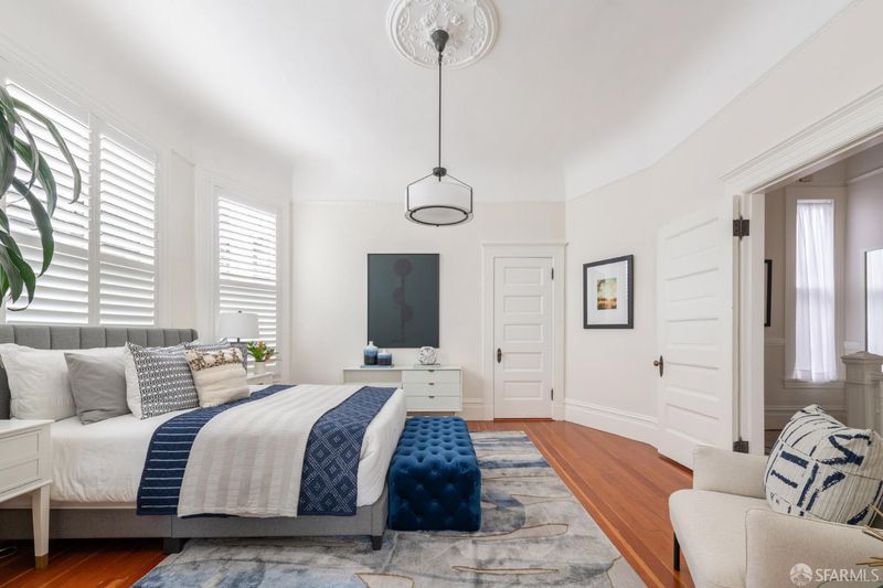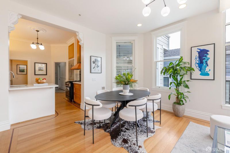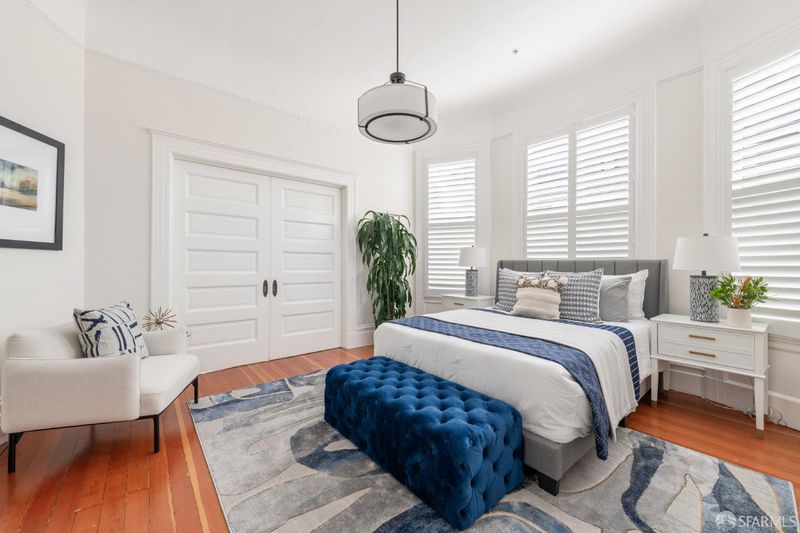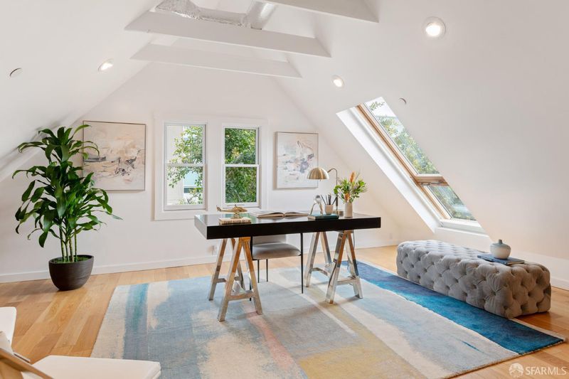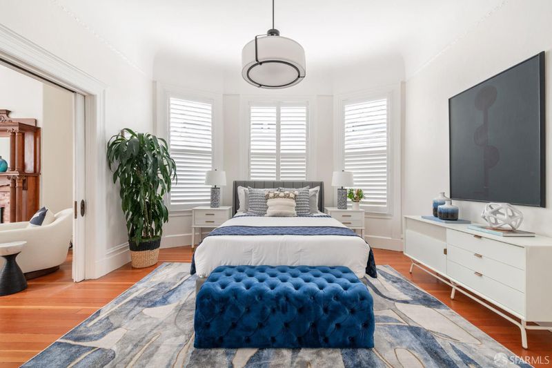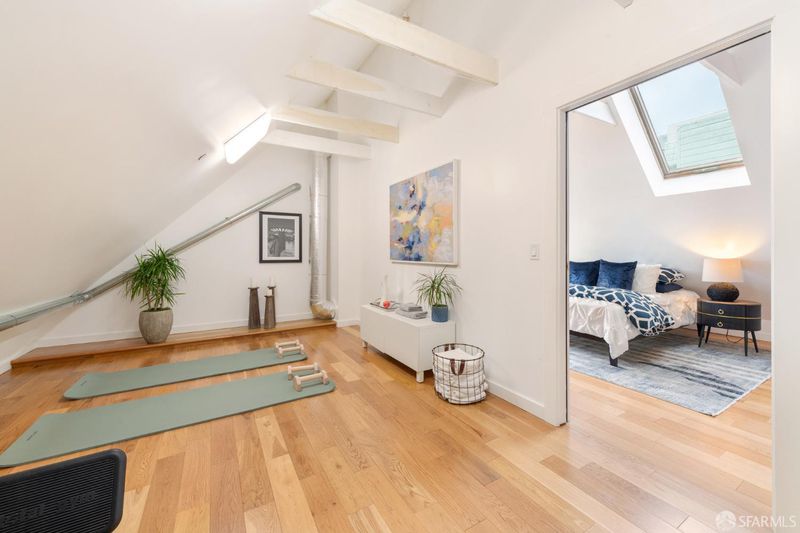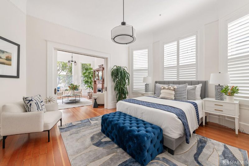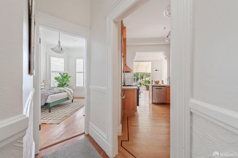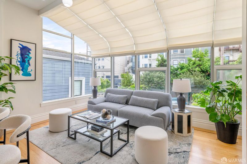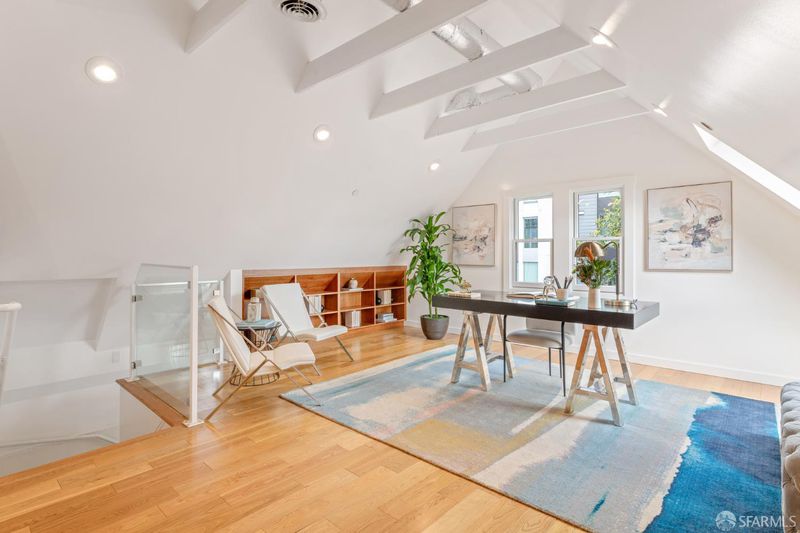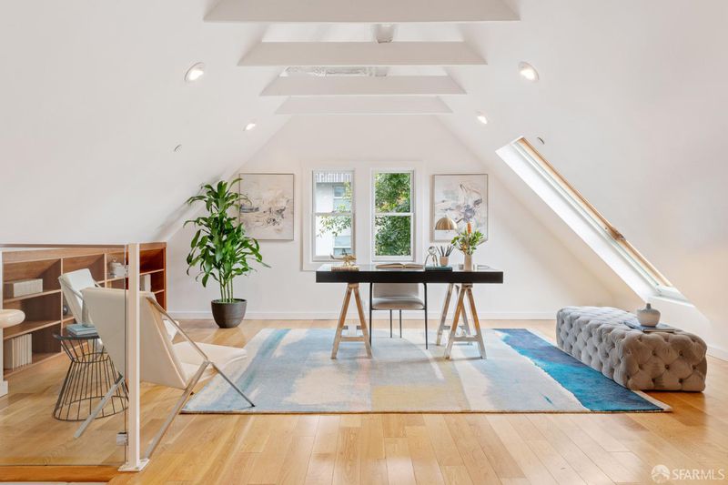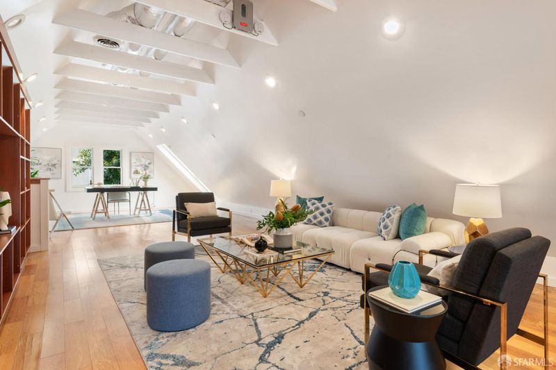 Set within a Victorian in the heart of Hayes Valley, this expansive condo lives like a single-family home, offering 2,961 square feet of light-filled living space across two full levels. Timeless architectural detail, thoughtful updates, and an exceptional sense of scale define the home throughout. Soaring 12+ foot ceilings, rich period craftsmanship, and beautifully preserved hardwood floors create a warm and elegant backdrop. A grand double parlor welcomes you with impressive proportions and abundant natural light ideal for both entertaining and everyday living. The updated kitchen features custom cabinetry and blends seamlessly with the home's historic character. The residence offers 4 spacious bedrooms and 2 bathrooms, including a distinctive octagonal primary suite with a gas fireplace, walk-in closet, and sunny south-facing windows. At the rear of the home, a stunning glass atrium room overlooks the garden and quiet Lily Alley, offering rare privacy with unobstructed outlooks an ideal space for relaxing or working from home. The upper level is fully finished and provides exceptional flexibility, with ample space for a home office, media room, gym, or additional guest accommodations making the home feel even more expansive and versatile. Additional highlights include deeded, gated off-street parking and a well-maintained, boutique 3-unit HOA with long-term owners. Ideally located with easy access to public transportation, major commuting routes, and the vibrant shops and restaurants of Hayes Valley, this is a rare opportunity to own a truly special San Francisco home.