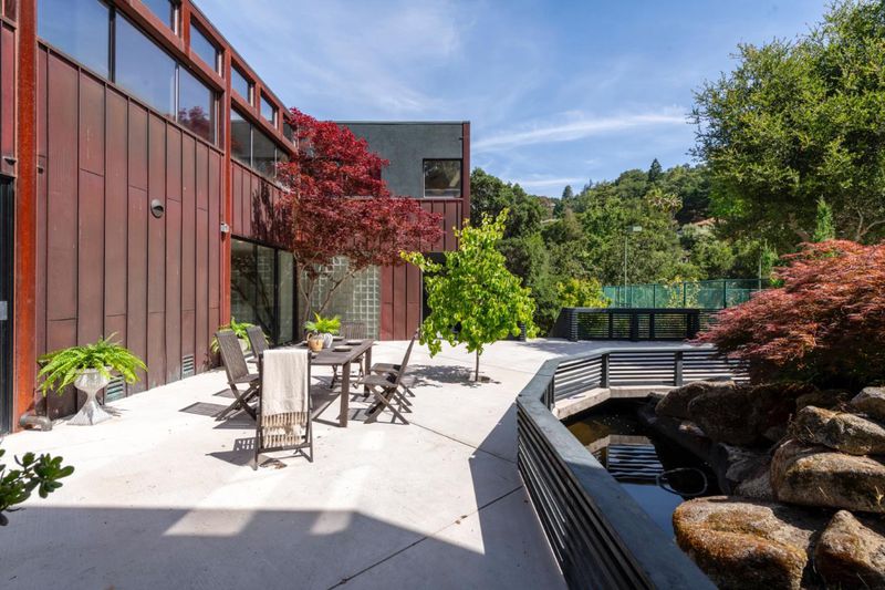 Japanese Mid-Century Modern Family Compound in Orinda Country Club Area Perched on a flat hilltop within the serene oak forests of Orinda, this rare multi-generational estate offers privacy, modern living, and timeless design. A 5-car garage provides generous parking, while inside, soaring ceilings and expansive living spaces create an atmosphere of elegance and comfort. The floor plan caters equally to lively entertaining and tranquil everyday living. The residence boasts 4 en-suite bedrooms, including a primary with dual closets. A library invites quiet reflection, while a theater/event room is perfect for hosting gatherings. Wellness and leisure abound with a gym, sauna, pool, hot tub, and a lighted tennis court. The grounds feature three gardens, waterfalls, and a tranquil koi pond. Detached quarters provide comfort for extended family, while EV stations ensure modern convenience. From every vantage point, savor oak forest views and unmated privacy. This estate is just mins from The Villages, DT Orinda, BART, and HWY 24 & 680. A short drive connects you to the vibrancy of San Francisco, Oakland, and their airports. This Orinda Family Compound is more than a home- it is a lifestyle, blending elegance, recreation, and multi-generational living in one remarkable property.