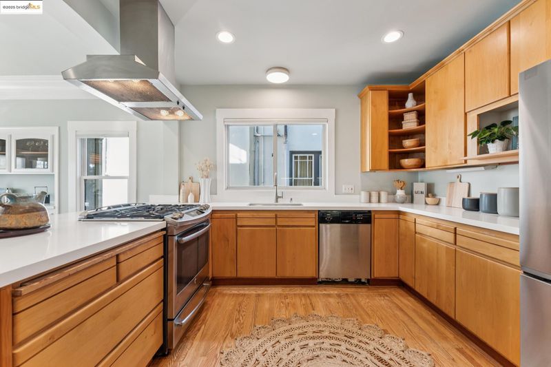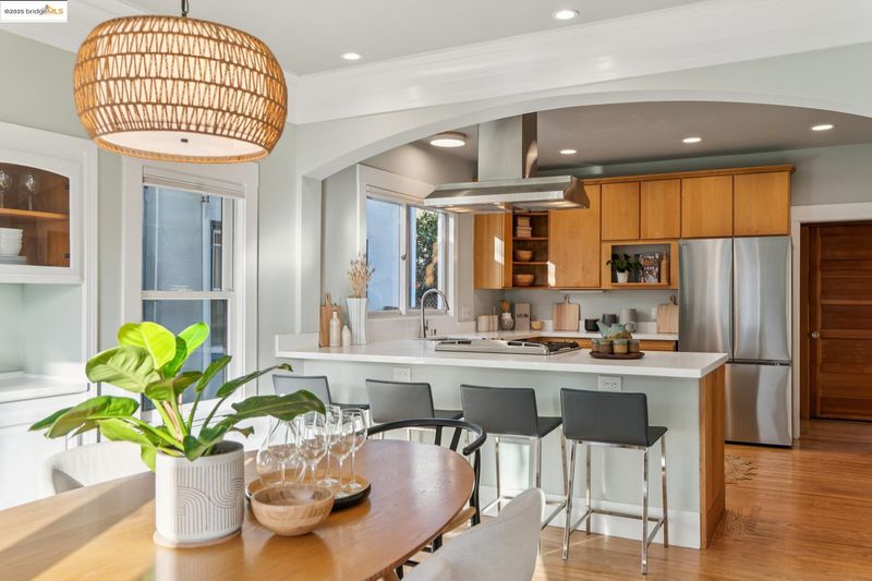 A beloved family home on a quiet cul de sac in one of Berkeley’s favorite neighborhoods! 3033 Regent Street is in the heart of the Elmwood, known for its beautiful architecture, tree lined streets, historic commercial district, popular shops and eateries, its own movie theater, not to mention a Julia Morgan designed live performance theater. Quintessential Berkeley at its best. This classic Craftsman home features four bedrooms, two bathrooms, great flow from the spacious, updated kitchen to the formal dining room and living room, plus a family room that opens onto a sunny deck and backyard. Original built-ins plus more recent beautiful custom fir woodwork, hardwood floors, picture rails, multi-light windows and custom shoji screens built by a master woodworker. Enjoy tranquil views of the Berkeley hills from the upper bedrooms, a skylit bathroom and generous light throughout. The home exudes an organic warmth that ties into the beautifully landscaped and tranquil Zen garden with bamboo, maple and river rocks. 93 Walkscore and 98 Bikescore!